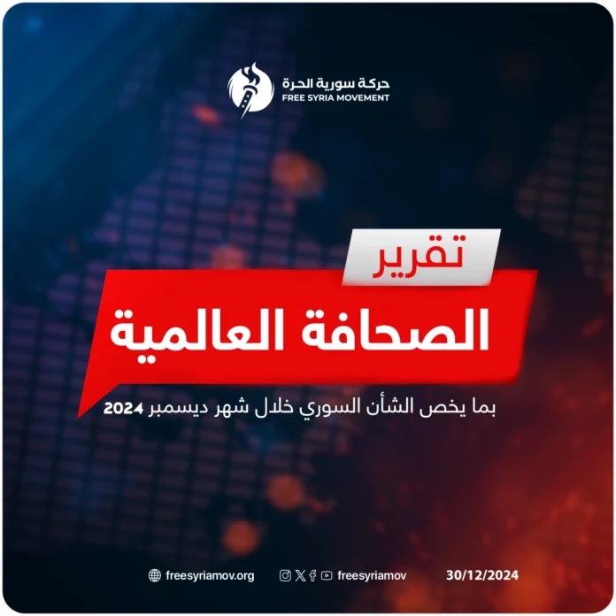 حركة سوريا الحرة التقرير الشهري شهر 12 للصحافة العالمية مايخص الشأن السوري30/12/2024