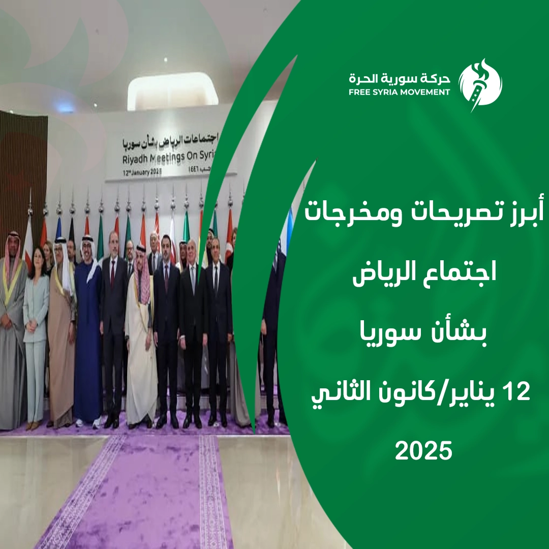 حركة سورية الحرة أبرز تصريحات ومخرجات اجتماع الرياض بشأن سوريا 12 يناير/كانون الثاني 2025